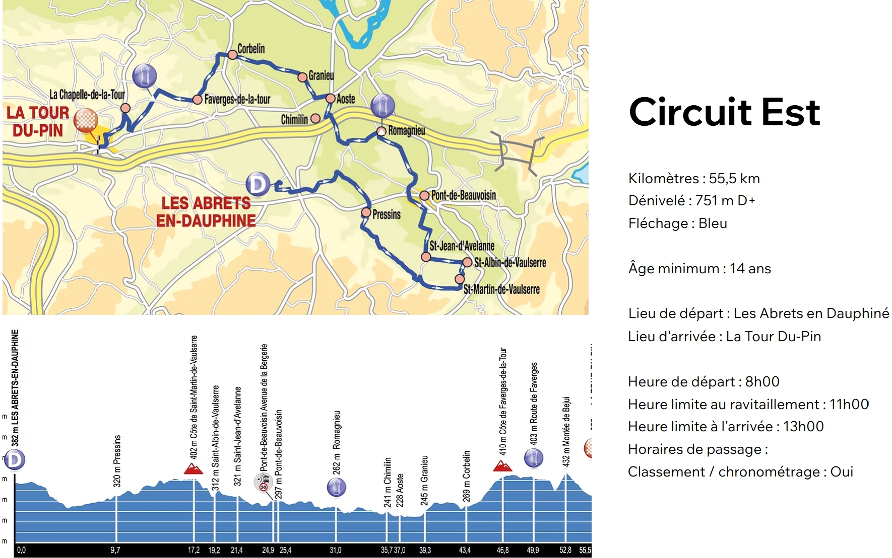 Circuit Est : 55,5 km – 751 m de dénivelé positif