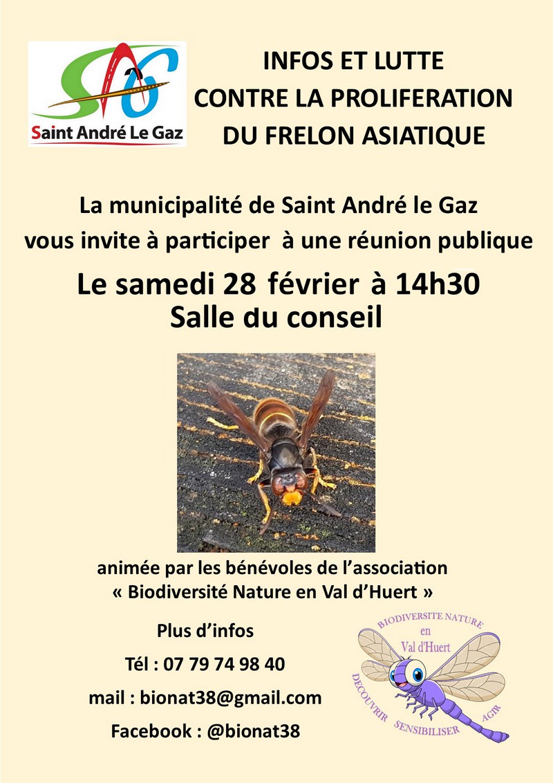 La municipalité de Saint-André-le-Gaz vous invite à une réunion publique contre la prolifération du frelon asiatique.