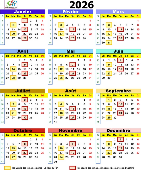 le JEUDI des semaines IMPAIRES pour Les Abrets-en-Dauphiné.