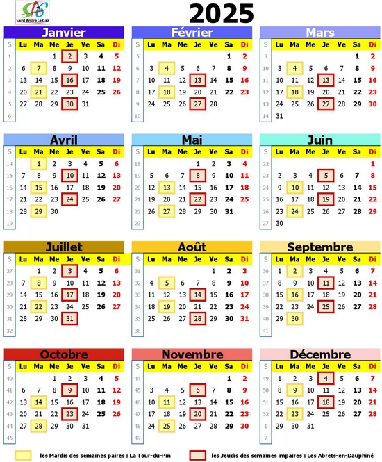 le JEUDI des semaines IMPAIRES pour Les Abrets-en-Dauphiné.
